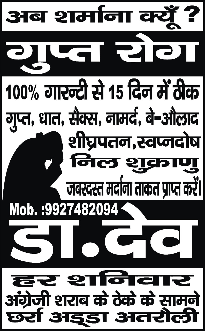 - सैक्स व गुप्त रोगी मिलें | हर शनिवार अतरौली -